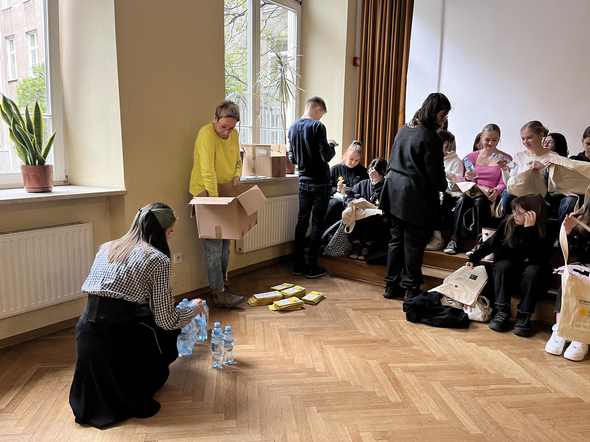 33 Wolontariuszy rozdawało papierowe żonkile w szkole i na ulicach Warszawy.