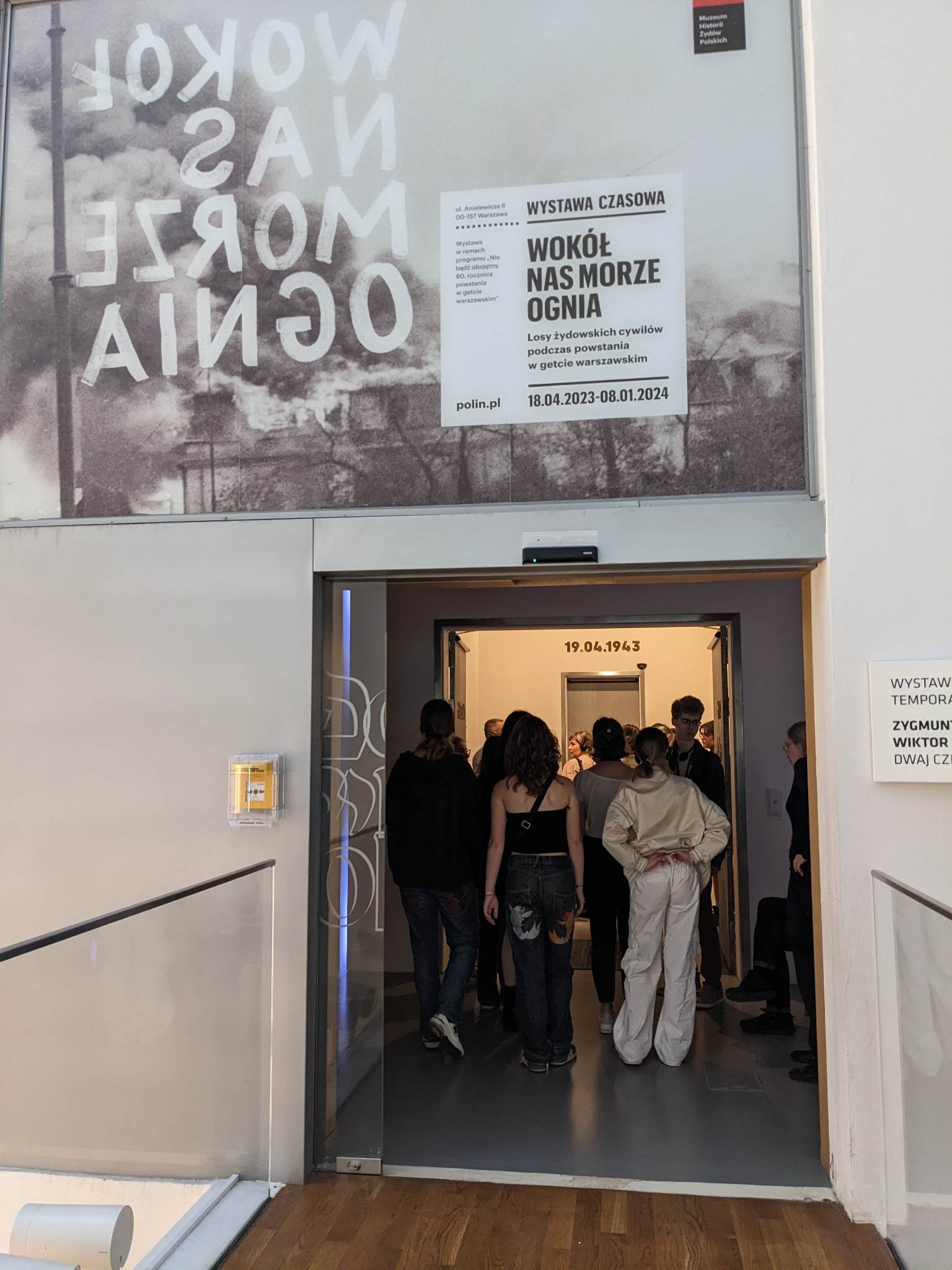 „Wokół nas morze ognia”. Losy żydowskich cywilów podczas powstania w getcie warszawskim” to pierwsza wystawa o powstaniu w getcie warszawskim przedstawiona z perspektywy cywilów. Podczas powstania zeszli oni do bunkrów i kryjówek, sprzeciwili się Niemcom i narzuconemu przez nich systemowi mordowania bezbronnych w obozach zagłady. Zamiast stawić się do transportu, ukrywali się. Ich cichy opór był tak samo ważny, jak ten z bronią w ręku.